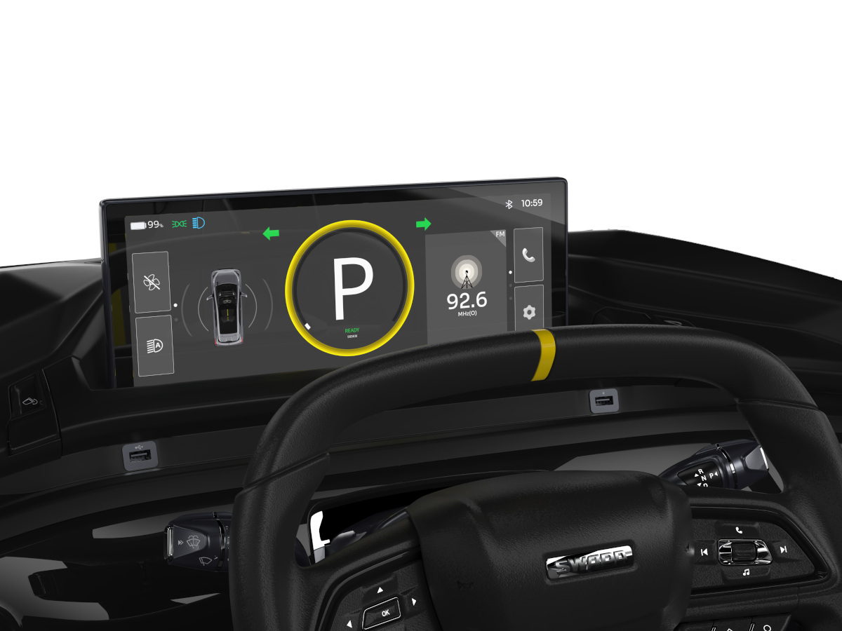 Im Innenraum überrascht dieses Microcar mit einer hochwertigen Ausstattung, die man in dieser Fahrzeugklasse nicht selbstverständlich erwarten würde. Ein großzügiges 12,3 Zoll Touchscreen Display mit Bluetooth und USB-Anschlüssen schafft moderne Konnektivität, während Sitz und Lenkrad individuell verstellbar sind und in Kombination mit der Servolenkung für eine komfortable, ergonomische Fahrposition sorgen. Eine integrierte Klima-Anlage sowie eine Standheizung erhöhen den Komfort zu jeder Jahreszeit. Praktische Details wie automatische anklappbare Spiegel, eine zentrale Türverriegelung mit Fernbedienung, Alarmanlage und eine Rückfahrkamera mit externer Einparkbedienung unterstreichen den Anspruch dieses Miniautos, Technik und Sicherheit intelligent zu verbinden. 16 Zoll Alu Felgen sowie eine durchdachte Kofferraum- und Kennzeichenbeleuchtung runden das Gesamtbild ab und verleihen dem Swapa Zip Citycar eine moderne, selbstbewusste Präsenz im Stadtverkehr.